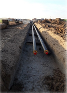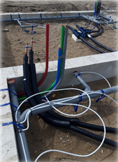 Ondertussen hadden we een plek toegewezen gekregen in deelplan 9 voor het regelstation. Je snapt het al, dan moet er een leiding van deelplan 9 naar deelplan 5 gelegd worden. Dit trace heeft MVOI voor ons aangelegd van november 2020 t/m februari 2021. In dit trace zitten 4 kunstwerken, zinkers om de watergangen te kruisen. Al met al een hele klus.